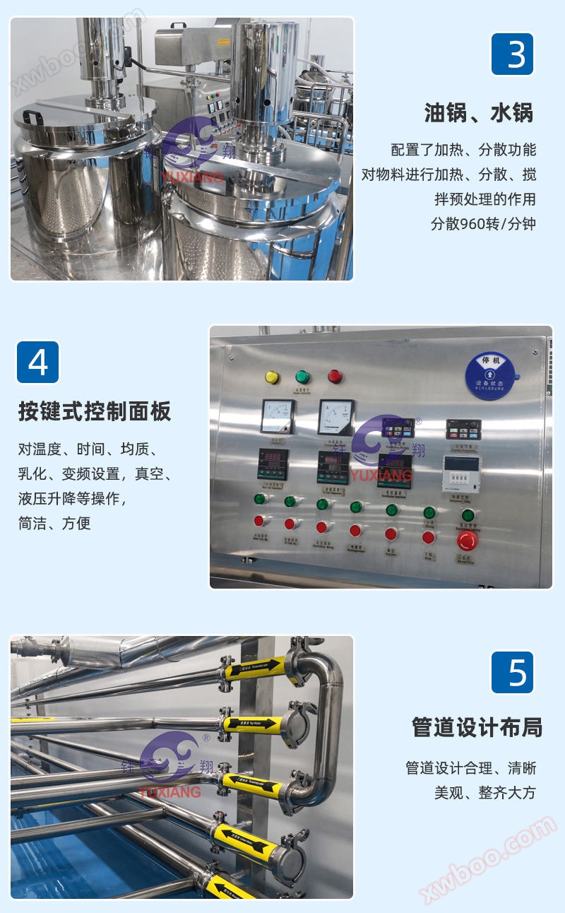 ◆ Diversificação de tipos de emulsionadores homogêneos de vácuo produzidos pela nossa empresa, incluindo homogênea superior, homogênea inferior, homogênea circular interna e externa, sistema de agitação unidirecional e bidirecional, mistura de rosca; Sistema de elevação de cilindro único e cilindro duplo, e pode personalizar uma variedade de produtos de acordo com as necessidades do cliente;